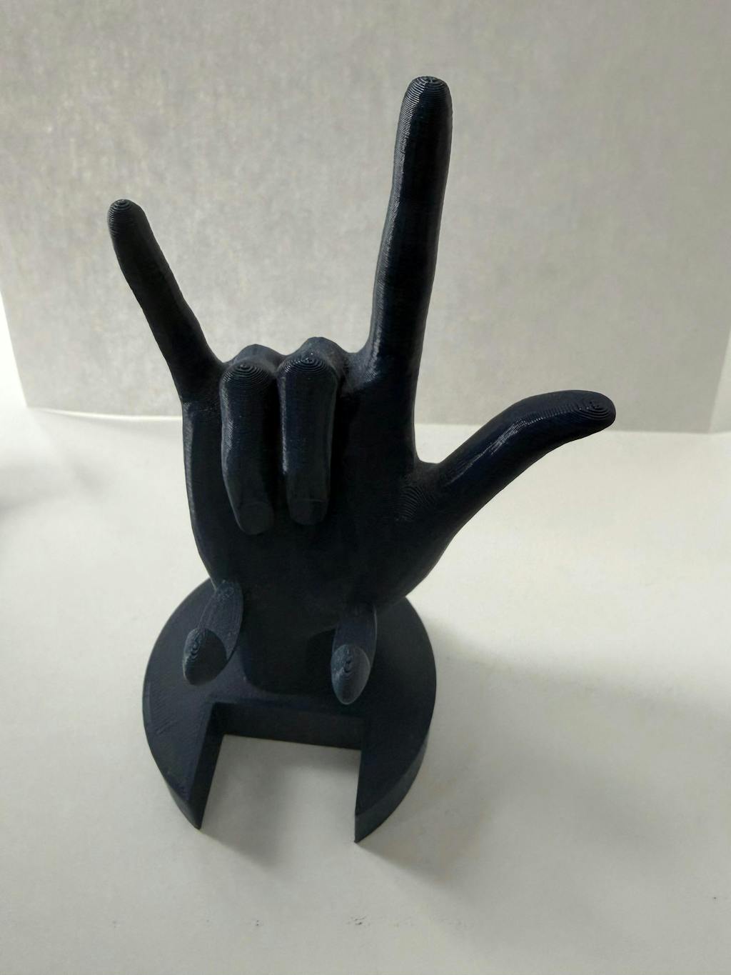 A Unique Phone Holder designed in the shape of the sign "I LOVE YOU" in American Sign Language (ASL) - a sign that has become common and accepted among the deaf communities all over the world!